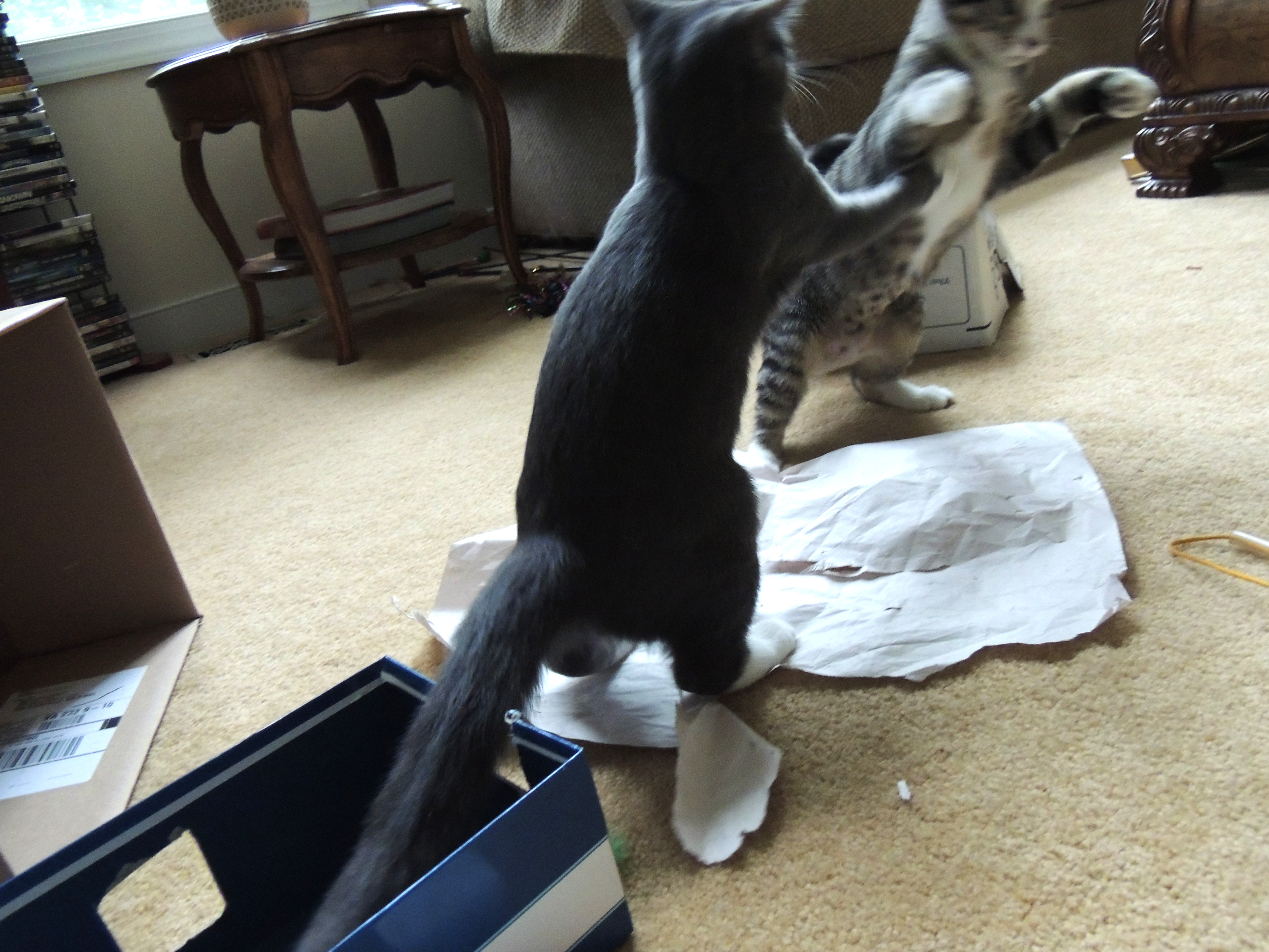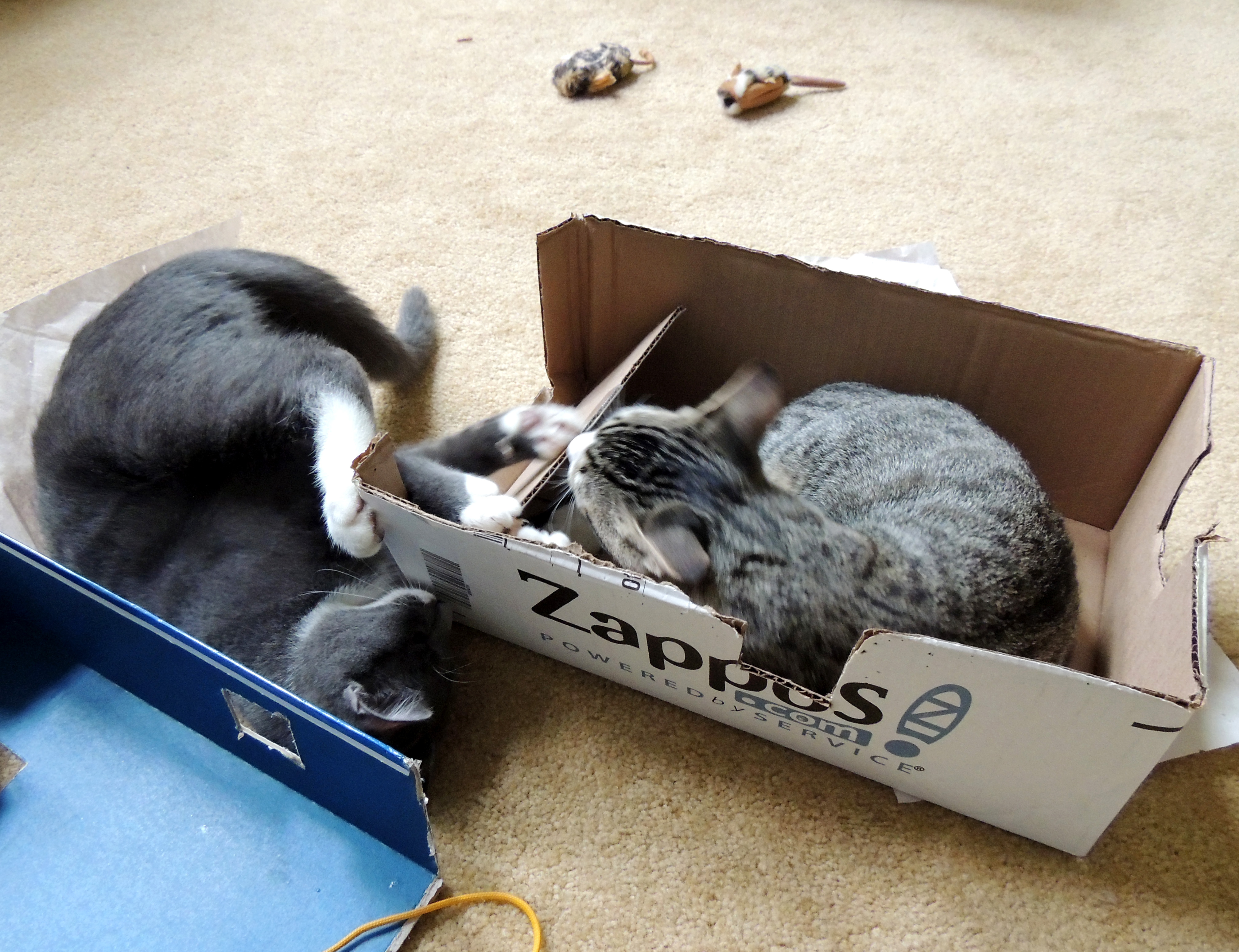 Scout & Misty – 5 months old October 25, 2014 by anyonecantakeapicture This post is about a week and a half late, but better late than never I suppose. They STILL love playing in boxes! Still getting into trouble… And still cute! Related